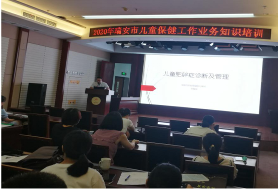 本网讯(通讯员 叶秀芬)7月31日下午,瑞安市儿童保健业务知识培训在市妇幼保健院9楼多功能厅成功举办,全市共计46位儿童保健医生参加。此次儿童保健业务知识培训会主要针对儿童肥胖管理及0-3岁儿童发育监测与筛查工作而开展。会议特别邀请我院儿童健康中心张智品副主任医师和陈科主治医师作主讲老师,儿保科科长丁吴女主持。