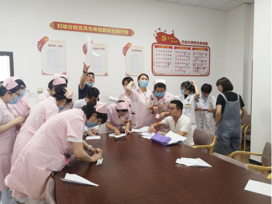 参加者亲手折一只纸飞机,从桌子一侧飞过整张桌子,就算过关。平时手握手术刀、操作复杂医疗设备有条不紊、游刃有余的医护,有些人却被小小的一张纸难住了,最后在热心同事的帮助下,都成功完成了游戏。