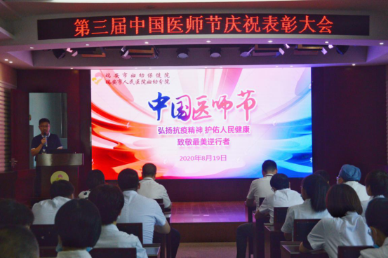 本网讯(通讯员 周寿铸)口罩之后的无声是对生命相托的专注,一袭白衣之下,是一颗仁爱济世的至诚之心。为庆祝第三届“中国医师节”,进一步激励医师更好地为广大患者服务,强化我院医师对病人的职业责任和营造尊医重卫的良好氛围,8月19日下午, 我院在九楼多功能厅召开第三届“中国医师节”庆祝表彰大会。医院领导班子、中层干部及全院临床、医技科室医师代表出席会议。