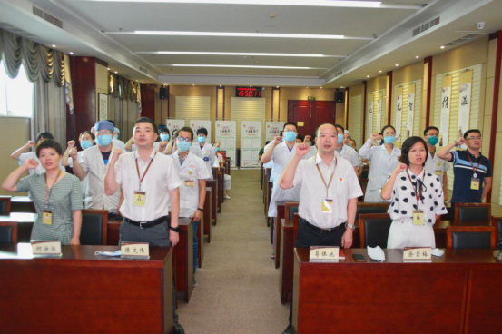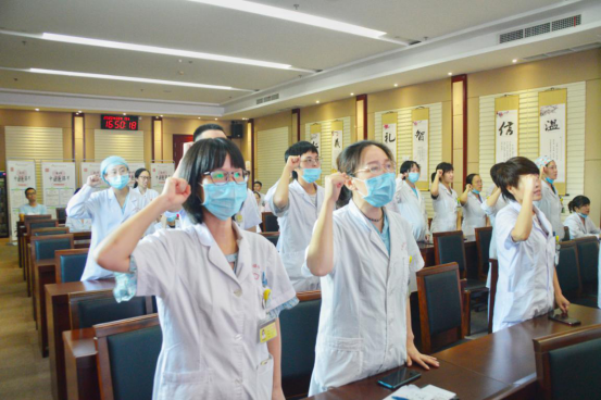 “我志愿献身人类的健康事业,自觉维护医学的尊严和神圣,敬佑生命,救死扶伤,平等仁爱 ,尊师重道;诚实守信,恪守医德,精益求精,慎思笃行;以上誓言,源于心,践于行。以上誓言,谨记于心,见于行动。”在产科医师林丽丽的带领下,参加仪式的医师们高举右手握拳,齐声宣誓,表达了他们投身医疗事业,维护医学圣洁的决心。