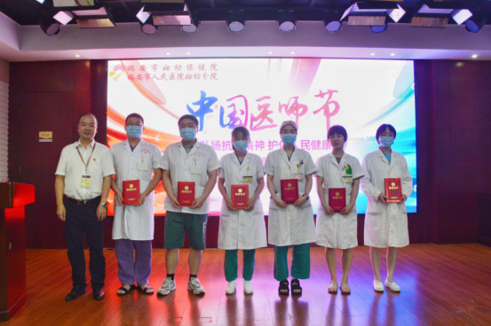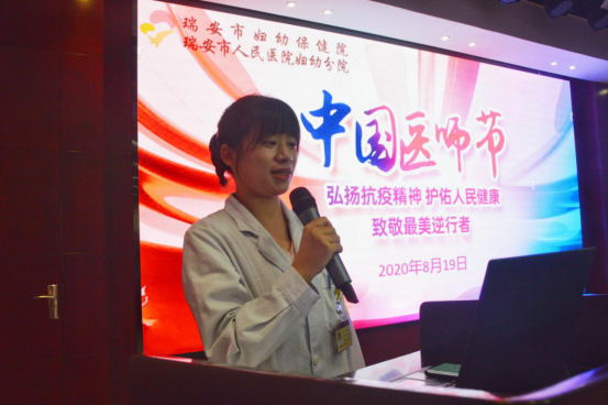 最后,党总支书记葛体池作重要讲话,首先他代表院领导班子向全院医师致以节日的祝福,向战斗在医疗工作前线的全体医务人员致以崇高的敬意。他表示我们妇幼在抗击疫情中为妇女儿童的健康安全做出贡献,在全省抗疫成绩中表现优秀,体现了医者仁心的宗旨,值得肯定。同时,葛体池书记对医护工作者还提出了以下几点希望和要求,一是要全面推进医院标准化建设,以评促进,以评促改;二是要主动出击,不断提升服务能力;三是要防患于未然,牢固树立医疗质量责任安全;四是要做一个廉洁的妇幼人,共同为我们院的发展,贡献我们的力量。