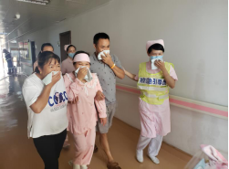 三分钟后残留火星再次起火,火势迅猛,病房内瞬间烟雾弥漫,梅护士及徐护士向各个病房派发湿毛巾,有序、迅捷地疏散孕产妇、新生儿及家属至安全区域。与此同时,消防人员到达现场,由黄护士引导至起火点……一场紧张的逃生、灭火演练井然有序地进行着,最后,护士长周敏确认病区无遗留人员,在安全区域清点人数后,在防火门上贴上胶布。