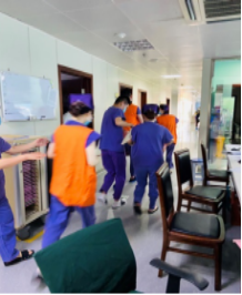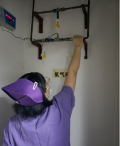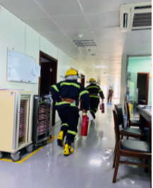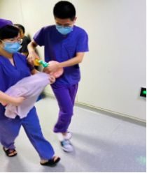 “着火了!着火了!快来人呀,足月儿室仪器着火了!”一声呼救,拉开了此次演练的序幕。值班护士在巡视途中发现足月儿室起火,立即呼救,并就近使用灭火器就地灭火。其他人员拨打院内报警电话通知消控室请求支援,同时关闭氧气阀门,按下火警报警按钮。随后消防灭火组快速抵达火灾现场支援灭火,护士长启动疏散应急预案,配合消防人员快速有序撤离现场。