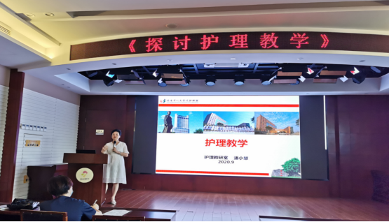 本网讯(文/吴玲丽 杜晓娜 图/杜晓娜)临床教学是护理教育的重要组成部分,是培养护理人员的关键阶段,临床护理教学质量的高低,直接影响着护理人才的素质和护理教育的质量。9月9日下午,我院特邀总院护理部教研室潘小慧主任,在9楼多功能厅举行《探讨护理教学》专题讲座。本次讲座由护理部主任郑骆颖主持,全体护士长及带教老师参加。