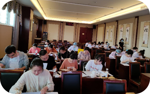 学习结束后,初训的学员们进行了新生儿复苏理论知识考试。