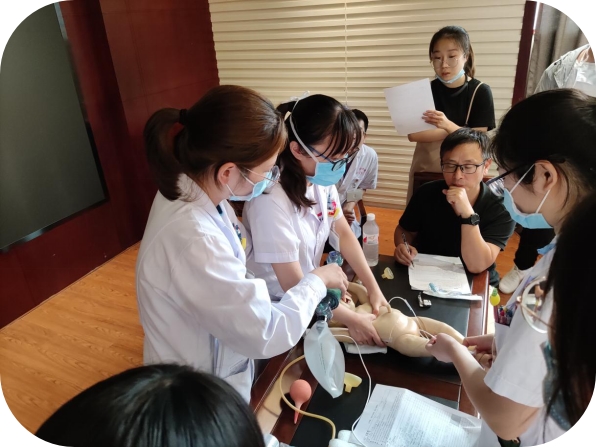 下午,万诚与项文娜分组为初训学员进行了模拟临床各场景的复苏操作考核,26人全部通过了技术考核。