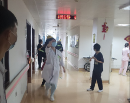 在保卫科人员的引导下和科室护士长的带领下,病区十二名护士分配好各自的任务,有条不紊的开始进行灭火及消防应急疏散演练,整个演练过程,从病人呼叫,到医护人员发现火情、报警、组织人员扑灭初期的火灾以及做好患者和家属的疏散工作,虽然只花了短短五分钟时间,但对于我们而言意义非凡。这五分钟可能会发生的事情谁都无法预计,但通过我们妇科病区的医护人员和保卫科人员的默契配合,杜绝了火情的严重化,保障了病区人员的人身安全,取得了圆满成功。