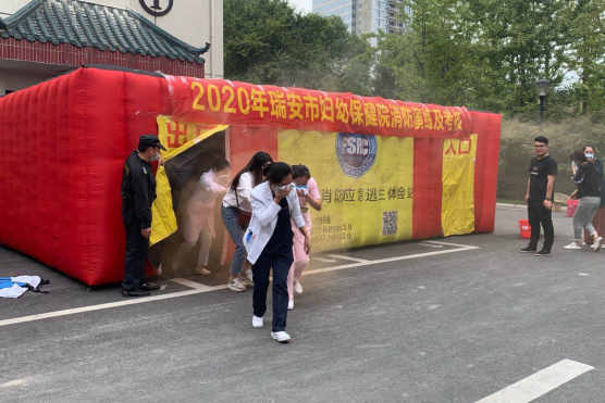 理论讲座后,便是应急疏散逃生演练考核。这次演练模拟了院内发生火灾,火势迅速向四周蔓延,并产生大量浓烟,当消控中心及时发现火灾后,立即启动灭火救援应急预案,同时组织疏散人员和拨打119火警电话。为了增进活动真实性和员工体验感,此次我院引入了“移动式消防应急逃生体验站”环节,通过教官现场讲解并示范,疏散逃生过程井然有序的进行。最后,实地对员工进行灭火器操作灭火考核,合格率达100%。