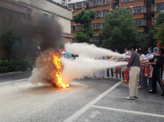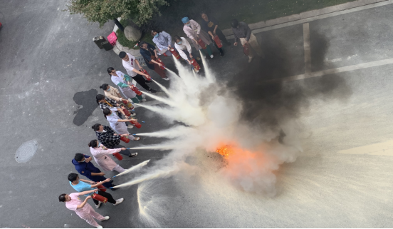 员工进行实地灭火器操作灭火考核