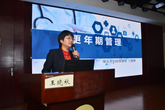 首先,我院妇科资深主任医师王晓秋给大家上了生动的一课《更年期管理》,她向大家形象生动的描述了更年期激素的变化,并对更年期的诊断分期做了详细的解释,还讲述了绝经对骨质疏松的影响、对心血管系统、中枢神经系统、血糖等的影响,更是分享了相关真实更年期病例,针对于更年期干预治疗与不干预治疗的所带来的不同结果的鲜明对照。提倡大家通过健康的生活方式、定期体检及合理的药物治疗等方式优雅更年。通过深入浅出的讲解,在场的女性朋友们纷纷表示,听完王晓秋主任的课后对更年期知识有了进一步的认识,原来更年期的女性也依然可以绽放美丽!