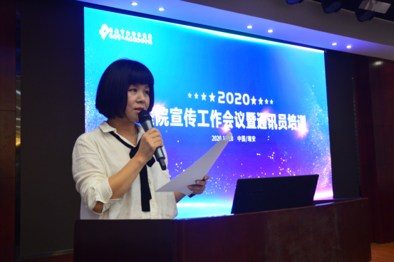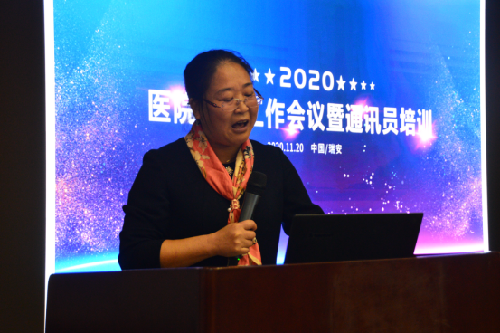 首先,由副院长余雪梅致辞,她指出,本次会议的目的是通过学习进一步提升我院通讯员的综合素质和业务水平,增强通讯员的新闻能力和写作能力,为打造品牌医院营造良好的理论氛围,共同开创我院宣传工作的新局面。
