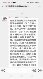 “在这里,我还想发自内心的再次感谢何妈!这几年我一直月经不调,找过好多个医生,去年上半年一次无意间的挂号,认识了613室的何妈!通过一次简单的面诊,她和其他的医生真的不一样,她给我的感觉就是希望和信心,充满了爱的感觉,那一刻我真的感觉这不像一个医生,像个救世者一样,讲的每句话都是那么给人踏实和心安!”