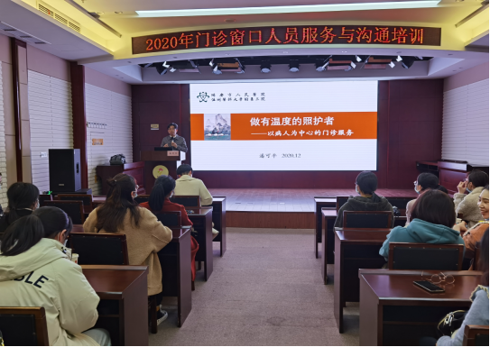 本网讯(通讯员 王静苑 )为进一步改善医院的服务品质,提高医务人员的服务态度,改善患者的就医体验,12月9日下午17点30分,我院门诊部组织开展2020年门诊窗口人员服务与沟通培训。此次服务培训由门诊部主任黄美琴主持,瑞安市人民医院院长助理潘可平老师受邀前来授课。门诊医护人员及出生事项联办处工作人员共100余人参加。