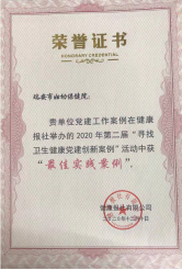 会上公布了2020年第二届“寻找卫生健康党建创新案例”获奖名单,瑞安市妇幼保健院从全国360家参选单位中脱颖而出,获得“最佳实践案例”奖,该院外联部副主任、宣教科科长游世梅荣膺“党建宣传优秀工作者”称号。