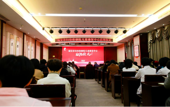 本网讯(文/潘玲燕 图/宋志洋 游世梅 谢丽艳)12月22日,瑞安市妇幼保健院儿童康复中心启用仪式在医院九楼多功能厅举行。瑞安市残联理事长张嘉祥,瑞安市卫生健康局党委委员、副局长卓益通,瑞安市残联康复部部长张必林,瑞安市卫生健康局妇幼与老龄健康科科长蔡庆高,温州市特教教育学校启智部主任何文辉,温州医科大学康复医学系主任陈翔教授,瑞安市人民医院党委委员、副院长兼瑞安市妇幼保健院党总支书记葛体池,瑞安市妇幼保健党总支副书记、院长陈文伟等医院领导班子成员,医务人员代表及温州市区、瑞安、乐清、苍南、平阳等康复专家代表等共80余人参加了此次启用仪式。