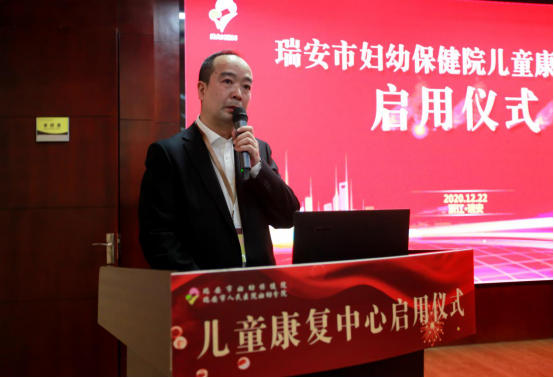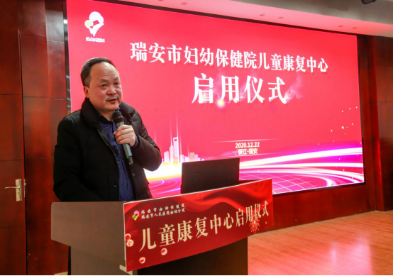 葛体池代表瑞安市妇幼保健院向到场的各位表示诚挚的欢迎。他表示,随着经济社会的快速发展和人民群众生活水平的不断提高,儿童保健的需求日益增长。瑞安市妇幼保健院全体干部职工将携手共进,以儿童康复中心的开诊为新的起点,满足广大患儿的就医需求。在各相关部门营造的良好环境下,在广大人民群众的支持和厚爱下,市妇幼儿童康复中心将努力把儿童康复事业做大、做强,建设成人民群众信赖、同行认可、政府满意的高品质儿童康复中心,为促进全市妇幼卫生事业的发展,做出更大的贡献!