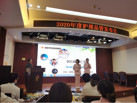 经过3个多小时激烈角逐,评委们根据选手的选题、演讲形式、内容、语言表达、质量工具使用、PPT制作等方面进行综合打分,并对每组QCC进行点评、提问,最终妇科病区《降低肌肉注射所致臀部硬结发生率》荣获一等奖,分娩室《基于FMEA提高监护仪报警应答的规范率》及产科二区《提高住院孕产妇转科交接完整性》荣获二等奖,产科三区《提高出院孕产妇电话访视的成功率》、手术室《提高手术患者安全核查的执行规范率》、新生儿科《降低入室新生儿低体温的发生率》荣获三等奖。