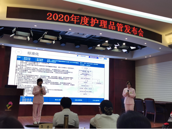 竞赛采取现场打分、现场公布结果的方式进行,出场顺序由抽签结果决定,11支护理队伍从临床实际出发,结合科室特点,根据专项检查内容及患者安全目标,选定各自的主题,针对主题,熟练运用各项品管工具,开展QCC活动,最终以多元化、多维度的形式进行成果汇报。