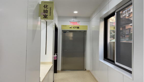 在化验区,医护人员可为患儿抽血,核酸室采集咽拭子,同时还配备CT室。