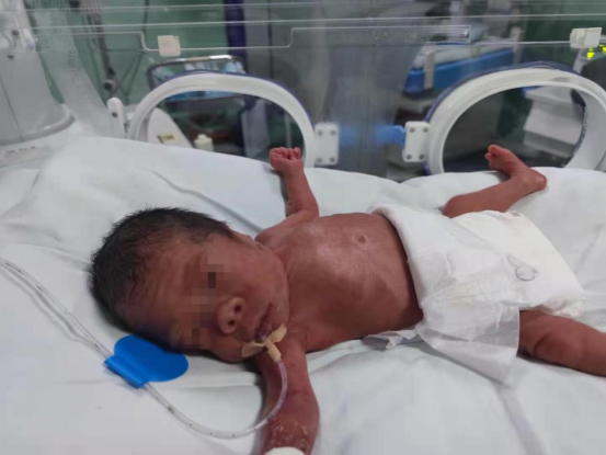 2020年12月31日傍晚,瑞安市妇幼保健院新生儿科迎来了一位特殊的极早早产儿,胎龄仅仅26+6周,出生体重只有1150克,加上出生时不哭,肌张力偏低,新生儿科医生立即予保暖、吸痰、气管插管、复苏囊正压通气等一系列处理,在这紧迫的1分钟处理后,患儿肌张力恢复正常,但是呼吸不规则、面色微绀,继续复苏囊正压通气,气管插管下由转运暖箱迅速转入。