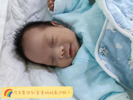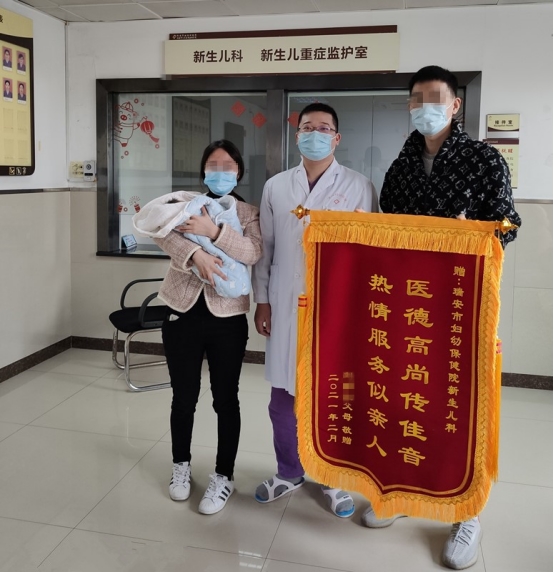 自2020月12月31日到2021年3月12日历时72天,对于我们医护人员来说,这是平凡的72天,而对于这个小家庭来说这是发生巨大转变的72天。在这72天里,宝宝突破重重难关,终于要回到自己的爸爸妈妈身边。接到宝宝要出院的消息,外地工作的爸爸特意赶回来,提早一天就在家布置宝宝的床,准备宝宝的衣物和生活用品,做好万足准备来迎接这个弥足珍贵的宝贝回到他们自己身边。宝爸宝妈此刻的心情无以言表,送来锦旗以示感谢。