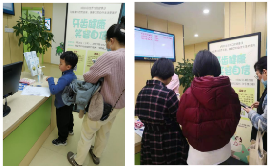 此次活动时间为3月20日上午、3月22日-3月23日全天,活动期间,口腔科医护人员为前来就诊的患者及家属普及口腔健康知识、纠正日常生活中大家不正确的洁牙护齿方式、附送宣传资料并邀请大家参加活动,有效提升大家口腔保健意识。就诊后的患者还可以在口腔科打卡留念后领取小礼物,没有就诊的群众也可以在瑞安市妇幼保健院订阅号上参加口腔知识问卷调查后,领取一份小礼物。据统计,共有80人参与此次活动。