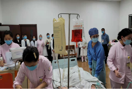 随着一声“来人啊,救命”,当班护士及医生迅速到位,从接诊、病情评估、开放静脉通路、颈静脉置管、心电监护、吸氧、抽血、查体到后穹隆穿刺,从化验结果分析、手术谈话、输血到护送患者进入手术室,整个抢救控制在20分钟之内,每一个环节都有条不紊,面对危急重,演练人员沉着、冷静、熟练,他们分工明确,各司其责,井然有序,帮助患者得到及时、妥善的处理,使病情得到有效控制,让患者家属满意,展示了妇科应对各种紧急突发事件的应急处置能力。