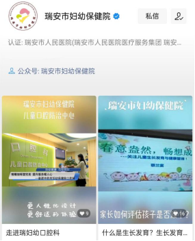 自正式发布首条视频以来,瑞安市妇幼保健院视频号已推送涵盖产科、儿科、妇科、口腔科、男性科、医院动态等10条优质短视频,共获得9081次浏览、311次点赞。截至目前,医院已形成以医院官网、微信公众号、微信视频号等多种网络平台组成的新媒体宣传矩阵!