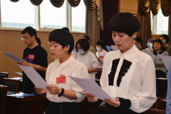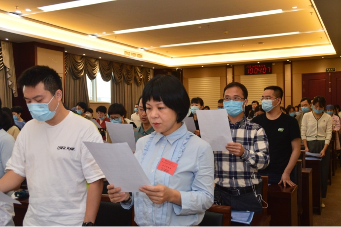 8点40分,大会在雄壮的国歌声中开幕。正式会议由党总支组织委员、工会主席、副院长余雪梅主持。