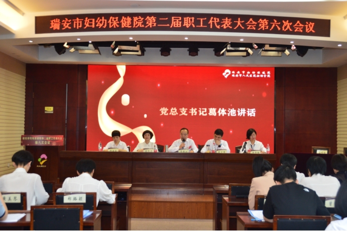 本网讯(文/胡秋萍 图/周寿铸 龚得朋)5月22日上午,瑞安市妇幼保健院第二届职工代表大会第六次会议在医院九楼多功能厅召开,全院78名职工代表、34名列席代表参加了本次会议,共商医院发展大计。