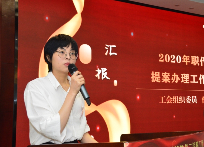 工会委员曾丽敏向大会作2020年职代会提案办理工作报告,2020年职代会共收到提案32件,立案27件,其中25件已经完成或在持续完善,2件因政策及客观条件不具备暂未落实,落实率达78.12%。