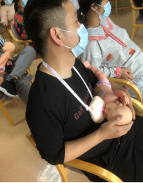 首先陈和敏护士长就什么是母乳、母乳喂养的好处、正确的喂养姿势及正确喂养的重要性等方面向产妇及家属做了详细讲解,在场的新手爸爸和妈妈们都听得津津有味,学的有模有样,拍照的拍照,录视频的录视频,生怕错过任何一个环节。