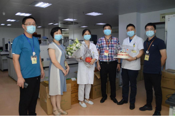 8月19日上午,瑞安市妇幼保健院党总支副书记、院长陈文伟,副院长陈秀清带领相关职能科长走访慰问临床一线岗位医务人员,向他们致以节日的问候,共同庆祝节日。每到一个科室,院领导都亲切地同值班医护人员们交谈,了解他们的生活状况,并为他们送上节日的祝福,对大家在医疗工作岗位上付出的辛苦努力表示衷心的感谢,希望大家不忘初心、砥砺前行,同时叮嘱大家要注意身体,关爱自己的健康。新冠疫情开始以来,全院各科室人员发扬以大无畏的精神、坚守岗位,为疫情防控贡献力量。特别医我院儿童发热门诊医师团队、检验科核酸检测团队顾全大局、坚守初心、勇担使命。