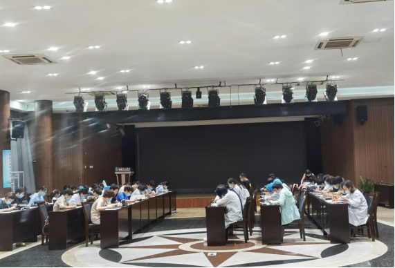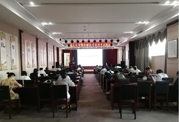 随后进行线下理论考试,考试分瑞安市人民医院、瑞安市妇幼保健院两个会场同时开始,参加培训人员严守考场纪律,整个考场严肃、安静。