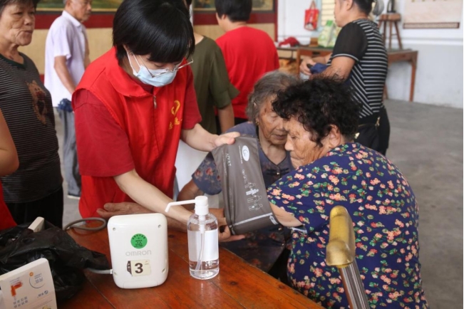 随着老年人年龄的增长,他们的身体素质却在逐渐下降,高血压、糖尿病等各种老年疾病也随之而来,对老年人的日常生活造成较大困扰。随后,我们在泊岙村文化礼堂开展了量血压、测血糖的活动,对检测出的高血压,糖尿病老人进行科普养生保健相关知识,提高老年人自主预防高血压、糖尿病的意识。同时强调在疫情防控期间,一定要戴好口罩,做好防护,并贴心送上疫情防护用品。