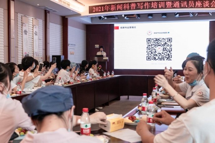 本网讯(文/王静苑 图/宋志洋)为进一步加强医院宣传队伍建设,提升宣传工作水平,瑞安市妇幼保健院于9月28日下午在九楼多功能厅举办新闻科普写作培训暨通讯员座谈会,全院各科室通讯员共计40余人参会,会议由宣教科虞春晖主持。