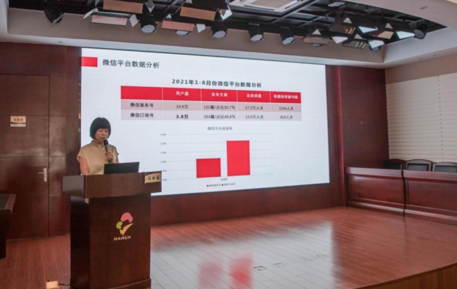 会上,宣教科科长游世梅从科室情况、稿件情况、积分与奖励、医德考评四个方面向大家重点分析与解读了医院宣传工作及通讯员投稿的奖励机制。今年1-8月份,院级录用稿件366篇,其中,文章被国家级媒体录用4篇,省级媒体录用2篇,温州市级媒体录用8篇,瑞安市级媒体录用11篇。微信服务号发布120篇,微信订阅号发布164篇,视频号发布52个作品,三个新媒体浏览量共达57万人次。她表示医院宣传队伍正在逐年扩大,文章的质量在持续提升,宣传辐射面在不断在扩大,这些与通讯员的努力是分不开的。