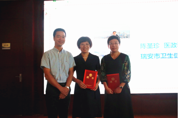 陈圣珍科长代表瑞安市卫健局向两位到场专家颁发顾问聘任书