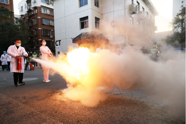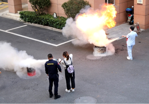 下午16:00,保卫科科长陈海慧向参训的新老员工讲解了医院家庭火灾预防常识、扑灭初期火灾以及逃生自救常识,并以近几年医院火灾案例为切入点,围绕消防安全“四个能力”建设要求,就如何提高单位自查自纠火灾隐患的能力、如何组织扑救初起火灾的能力、如何组织人员疏散逃生的能力和如何做好消防宣传教育培训的能力这四个方面的内容做了详细的解说。同时,现场演示了灭火器使用的方法和易记口诀,通过示范性教学,使参训员工能快速掌握预防和扑救火灾的基本方法。