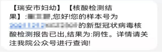 12月10日下午,接到任务后,瑞安市妇幼保健院信息科在实地查看服务点情况后,马上与医务科、护理部开始梳理现有流程,确定优化方案;同时紧急调配电脑及配套设备,在服务点新增登记工作站。当天下午在原有的检测登记系统的基础上新增了扫码预登记功能,只要检测对象在手机上完成预登记后,就能在前台快速完成登记打印,大大提高了登记打印效率,有效缓解了排长队的情况。同时,针对广大检测对象最关心的核酸检测结果问题,在12月12日晚新增了核酸结果报告后的短信提醒功能,方便检测对象能够在第一时间知晓核酸检测结果。