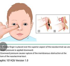 如果宝宝被确诊为新生儿泪囊炎,家长无需太担心,因为大多数婴儿出生后泪道仍处于不断发育的阶段。两个月以内的患儿可先采取泪囊按摩治疗法,对宝宝的泪囊区(鼻梁两侧)顺着鼻泪管方向向下按摩,促进泪液往鼻泪管方向流动,每天做2-3次,每次1分钟(家长剪短指甲,按摩前洗手)。同时,应按医嘱配合使用抗生素眼药水,滴药水前先用棉签将宝宝眼角的分泌物擦拭干净。这样治疗一段时间后,薄膜就会自行破裂,泪道也就通畅了。如果经一段时间保守治疗无效的患儿,可以到眼科冲洗泪道,将薄膜冲破。对于4个月大的宝宝,若经每月2次的加压冲洗仍然无效,需行泪道探通术,用探针将薄膜刺破,使泪道通畅。通过加压冲洗或泪道探通术,99%的患儿都能痊愈。对于骨性狭窄或鼻子畸形造成的泪道堵塞,则需考虑手术或者其他的方法来使泪道通畅了。