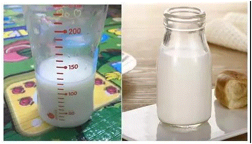 当轻轻摇晃后即可混匀,但混匀后的母乳看上去仍然略显稀薄。牛奶或配方奶则显得颜色较白且较浓,甚至会有些颗粒感混在其中。