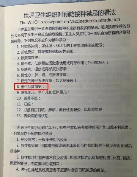 可以。WHO对预防接种禁忌的看法:“出生后黄疸史”不是预防接种禁忌。