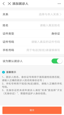 4.填写相关信息(选择关系为本人,卡类型填就诊卡或住院号都可)。