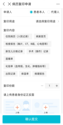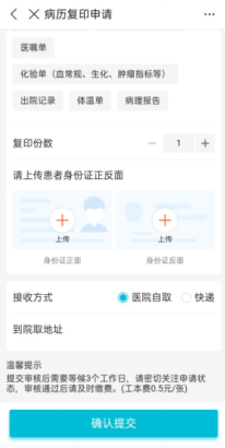 6.通过人脸扫描识别后,即可完成病历申请,在三个工作日后可查看病历申请状态。