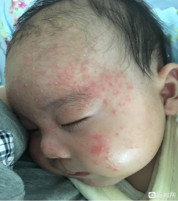 炎热季节或剧烈哭吵后,个别宝宝会在前额、颈部、前胸、后背等处见针头大小的小疱疹,又称白痱。因新生儿汗腺功能欠佳所致,适当降低室内环境温度,减少出汗,更换柔软宽松的衣物,保持皮肤清洁即可,若表面出现化脓,可涂抹抗生素软膏。