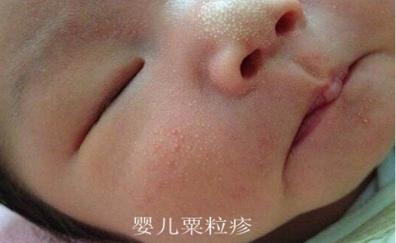 表现为鼻尖、鼻翼或面部长满黄白色小点,大小约1mm,是受母体雄激素作用而使新生儿皮脂分泌旺盛所致,甚至有的新生儿乳晕周围及外生殖器部位也可见到这种皮疹。一般于4~6个月自行吸收,千万不要去挤,否则会引局部感染。