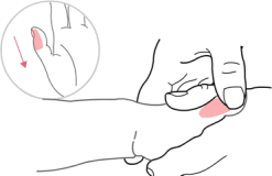 操作:拇指桡侧缘由指尖向指根方向直推 ,持续100-300次,可起到健脾胃、补气血的作用。