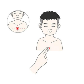 操作:揉颈部胸骨上窝中央处的该穴,持续10-50次,可起到理气化痰、止咳平喘的作用。