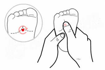 操作:足底前1/3处,用我们的大拇指快速揉1-3分钟,可起到滋阴补肾、调理五脏之间的作用。